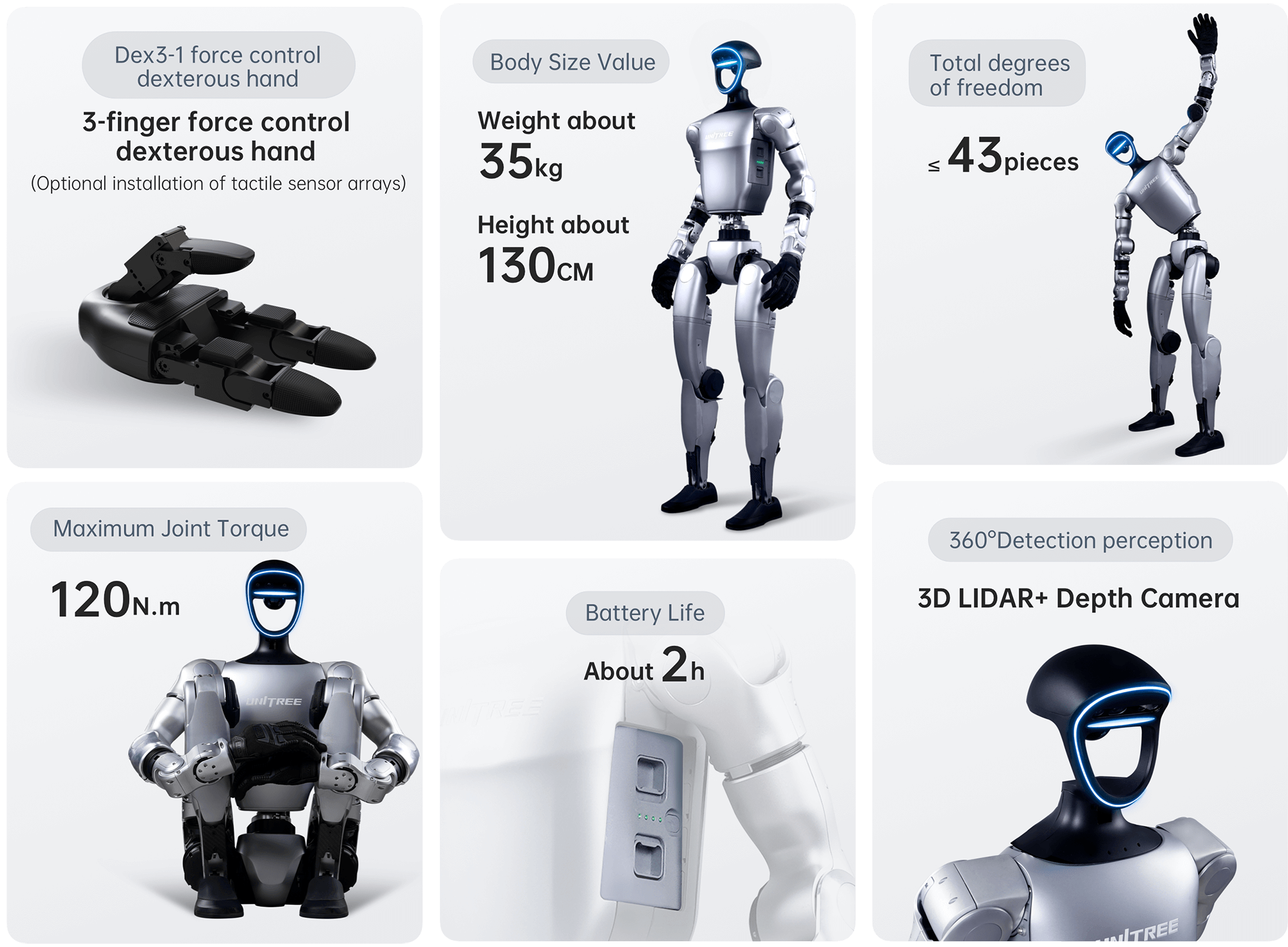The Unitree G1 is a versatile, full-size humanoid robot designed to bridge advanced robotics research and real-world automation applications. With human-like movement, intelligent sensing, and customizable control systems, G1 delivers precise manipulation, dynamic mobility, and extendable AI capabilities — all in a compact, agile platform that scales from labs to enterprise environments.