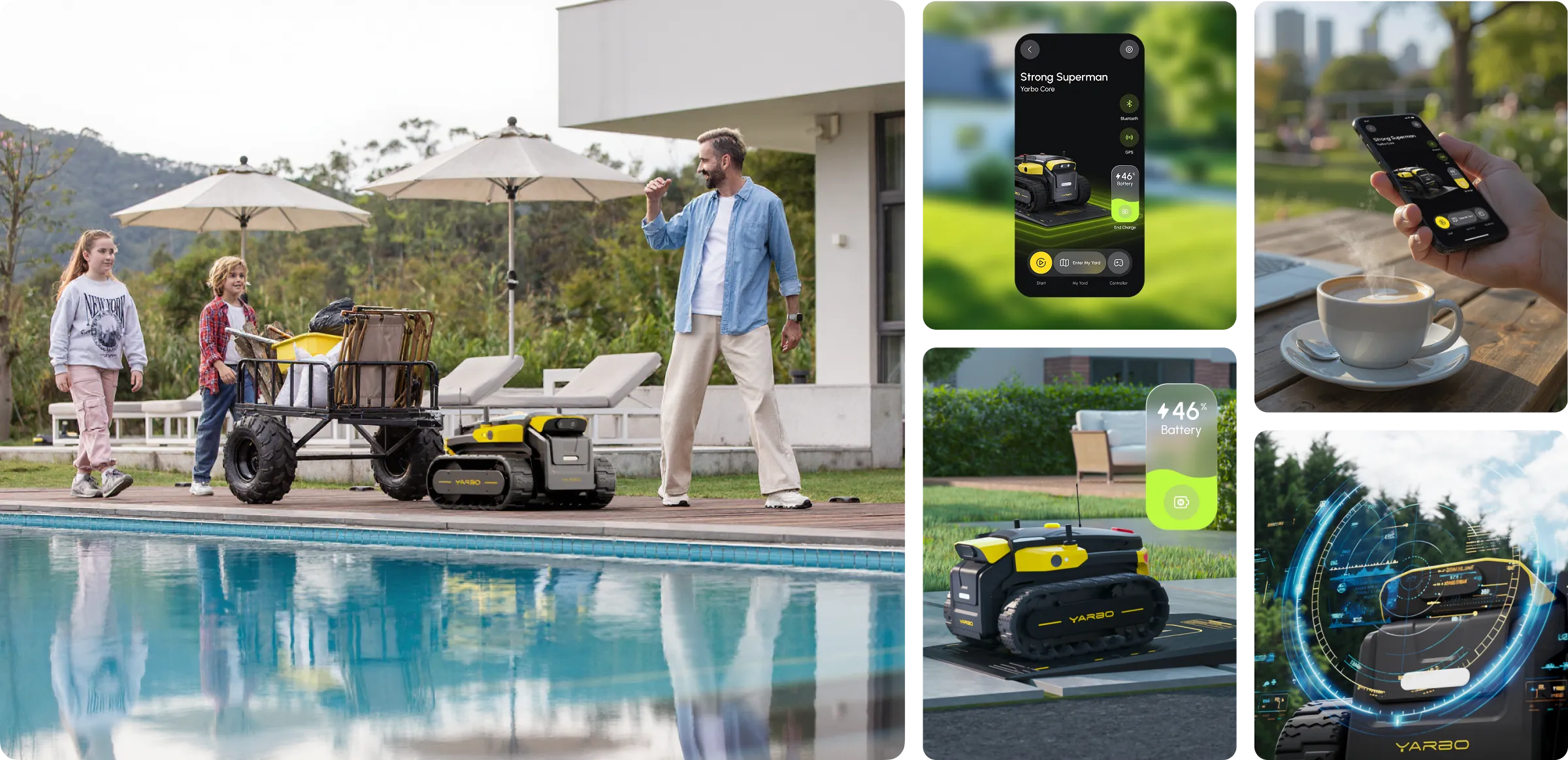 • Follow-Me & Patrol Modes: Yarbo follows you on command, hauls gear, or patrols your yard with real-time alerts and audio deterrents.